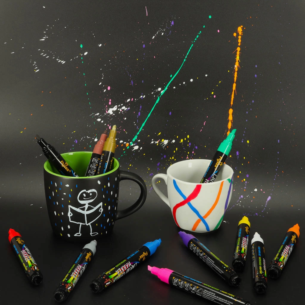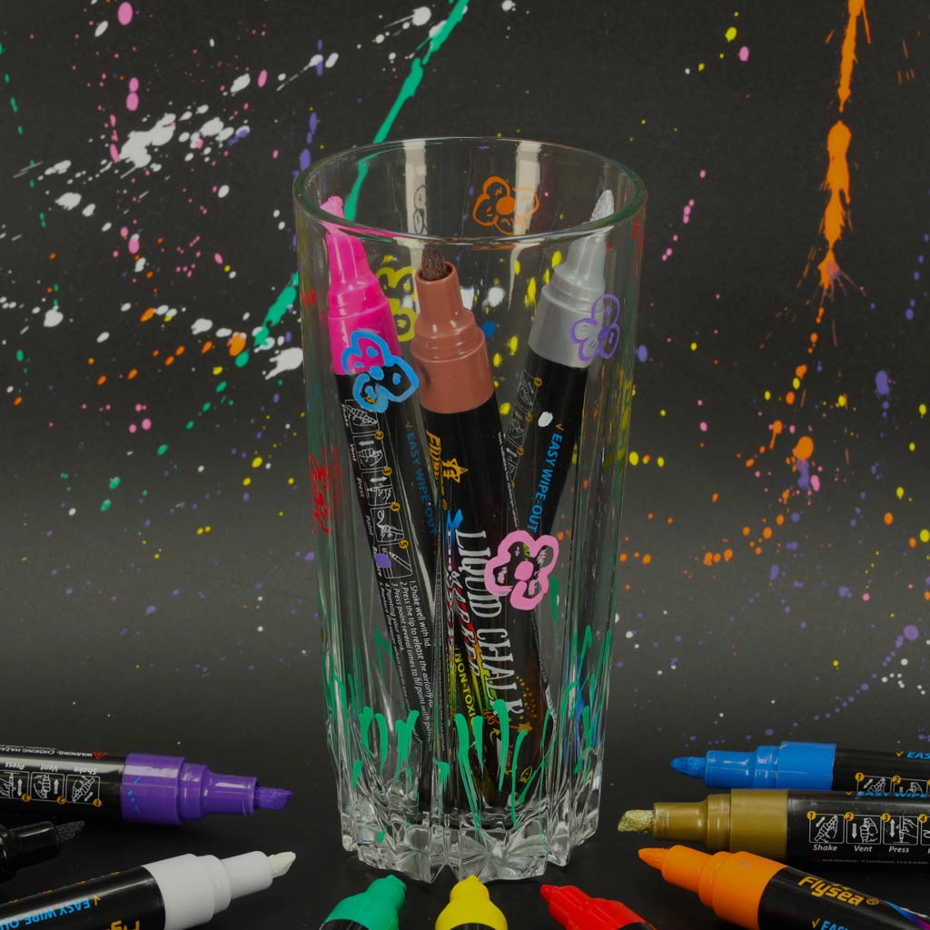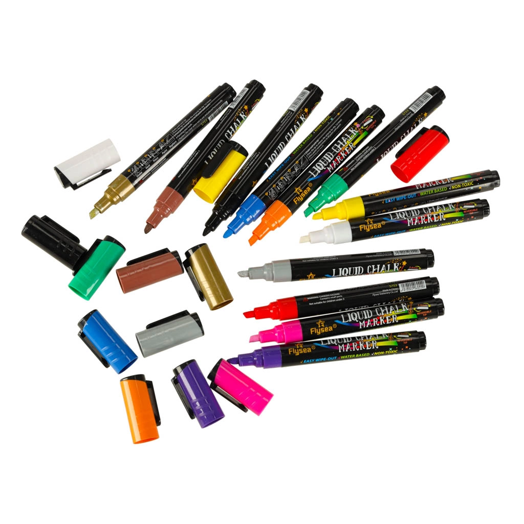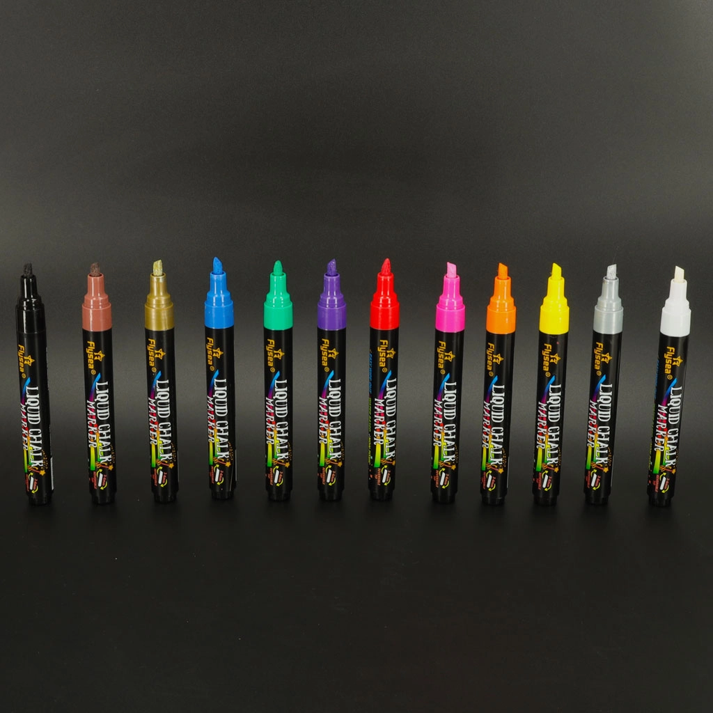 Pridajte farbu svojim nápadom s našou sadou 12 farebných kriedových fixiek! Táto sada obsahuje 12 živých odtieňov, ktoré vyniknú pri tvorbe nápisov, ilustrácií a dekorácií. Ideálne na zdobenie výkladov, zrkadiel, suchých tabúľ, keramických hrnčekov a iných hladkých povrchov.