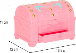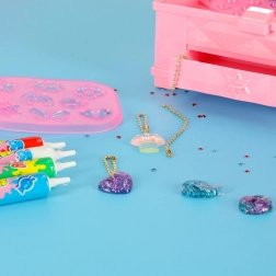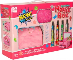 Magická krabička je úžasná kreatívna sada, ktorá umožňuje deťom vytvárať osobité šperky s pomocou farebného lepidla. Set obsahuje štyri tubičky lepidla v farbách: červená, zelená, modrá a biela, a štyri formičky rôznych tvarov. Doplnkové dekoratívne prvky, ako trblietky a malé kryštály, umožňujú personalizáciu šperkov podľa vlastnej fantázie. Na prácu je k dispozícii pilník a pinzeta.