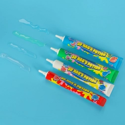 Sada obsahuje štyri tubičky lepidla v rôznych farbách a formičky s rôznymi vzormi.