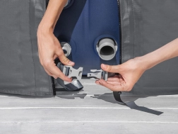 Praktické zipsové riešenie umožní pripojiť vstavanú aj externú pumpu bez nutnosti kryt skladovať.