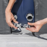 Odolný materiál DuraPlus je navrhnutý na dlhodobé vonkajšie používanie – je vodoodolný, rozmerovo stály a ľahko sa udržiava. Praktický zipsový otvor umožňuje pripojiť vstavanú alebo externú pumpu bez potreby kryt skladať, takže údržba je pohodlná a rýchla.