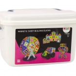 Objavte kreatívny svet s touto sadou magnetických stavebníc s celkom 118 dielmi. Vďaka silným magnetom a unikátnym tvarom deti ľahko postavia mlynské koleso, budovy, autíčka a ďalšie projekty. Praktický kufrík s rukoväťou uľahčí ukladanie aj prenášanie, zatiaľ čo interaktívne prvky a edukačné nálepky podporujú kreativitu, logické myslenie a jemnú motoriku.