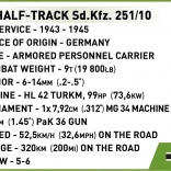 Stavebnica Half-Track Sd.Kfz. 251 prináša autentický zážitok zo stavby aj hrania. Vďaka detailným potlačiam, pohyblivým kolesám s gumovými pneumatikami a realistickým pásom sa model správa ako skutočné vozidlo. Otváracie zadné dvere a množstvo doplnkov podporia kreatívne scenáre.