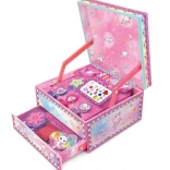 Objavte zábavu s pečiatkami v rozkošnom motíve mačičky baleríny. Štýlová krabička–skrinka sa po otvorení veka sama vysunie, takže je všetko prehľadne po ruke a zase ľahko upratané. Skvelé na tvorenie doma aj na cestách.