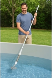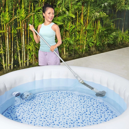 Udržujte vodu krištáľovo čistú bez námahy. Bezdrôtový vysávač BESTWAY je navrhnutý pre malé nadzemné bazény a vírivky, kde spoľahlivo vysaje piesok, lístie a usadeniny. Vďaka ľahkému teleskopickému nadstavcu pohodlne dosiahnete do všetkých kútov a tvarov bazéna.
