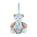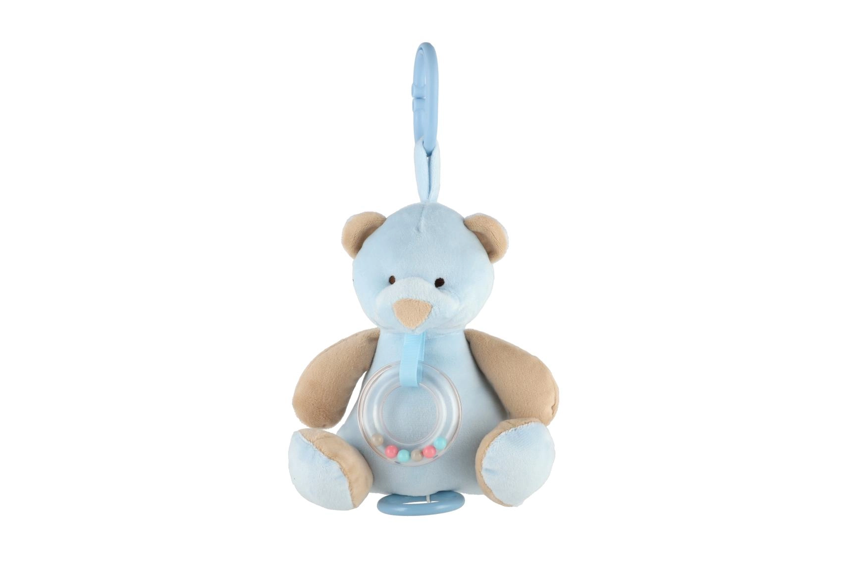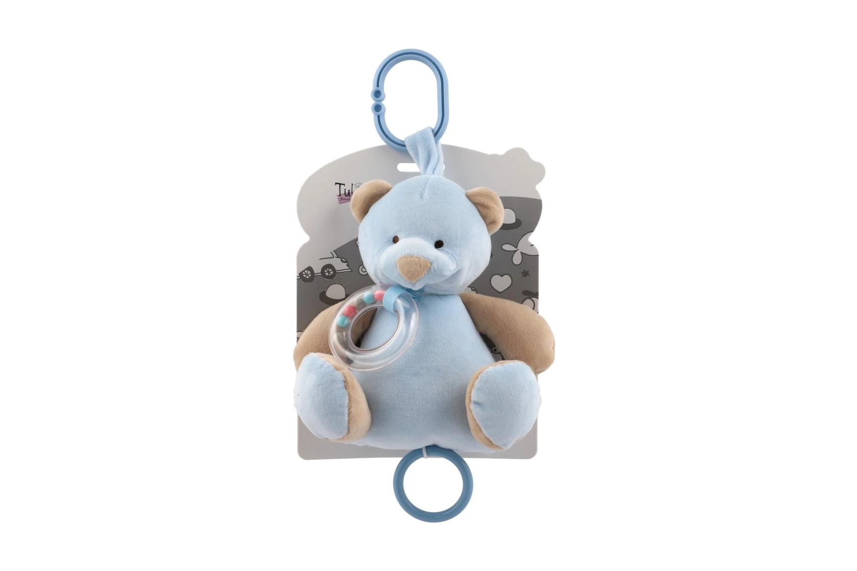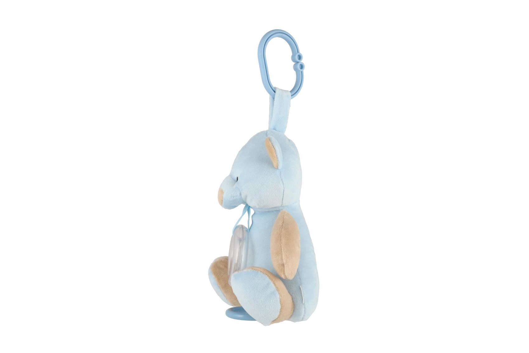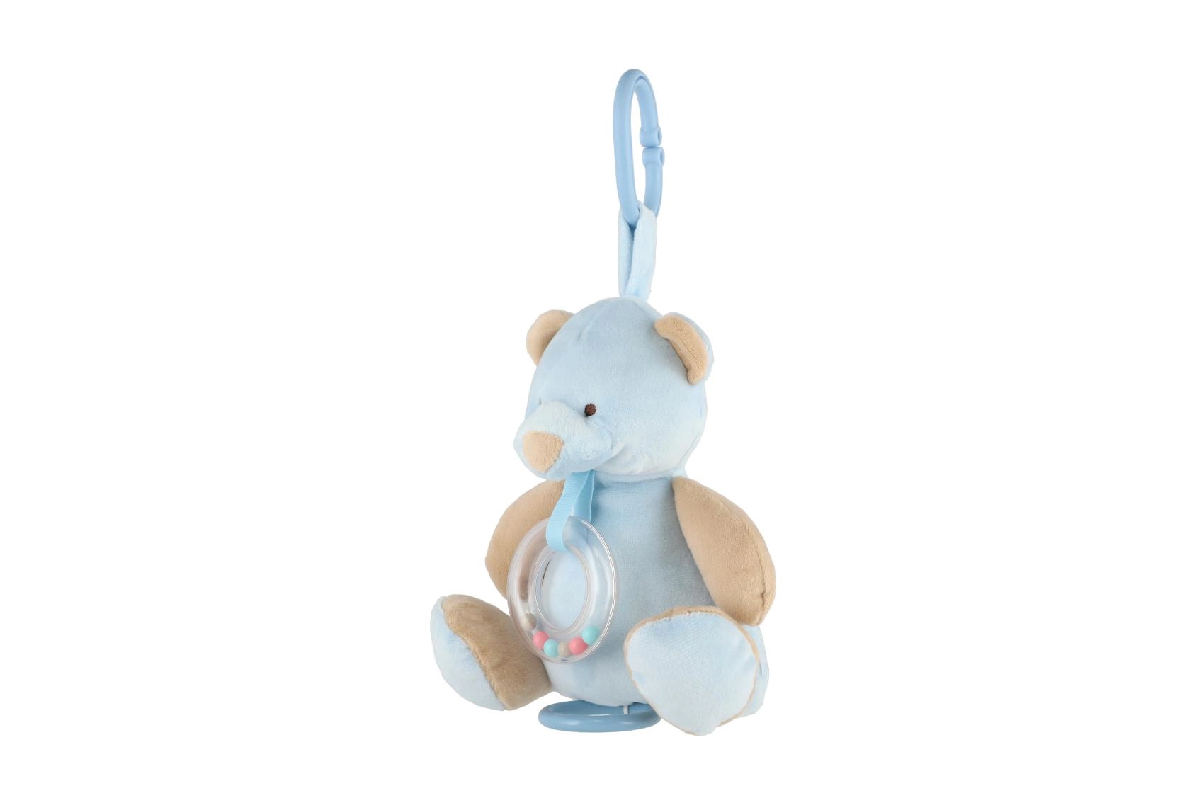 Roztomilý modrý medvedík s hudobným/rachotiacim prvkom a závesným klipom upokojí bábätko doma aj na cestách. Je mäkkučký, bezpečný pre deti a vďaka jemným farbám sa hodí do každej výbavičky. Priehľadný krúžok s korálikmi poskytuje zvukovú stimuláciu, klip umožní ľahké zavesenie na kočík či autosedačku a príjemný plyš podporuje zaspávanie.
