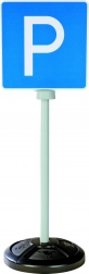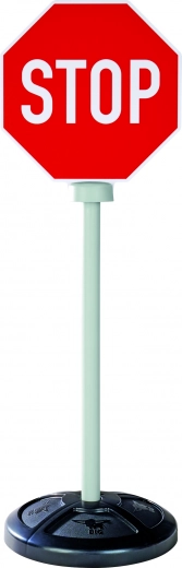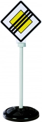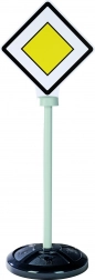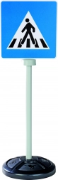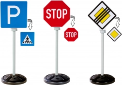 Sada obsahuje tri stabilné značky, každá s obojstrannou potlačou predstavujúcou celkom päť realistických dopravných symbolov: STOP, hlavná cesta, koniec hlavnej cesty, parkovisko a priechod pre chodcov.