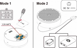 - Dvojité napájanie: USB 5 V alebo 3× AA (batérie nie sú súčasťou)