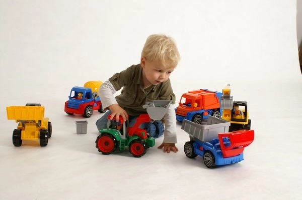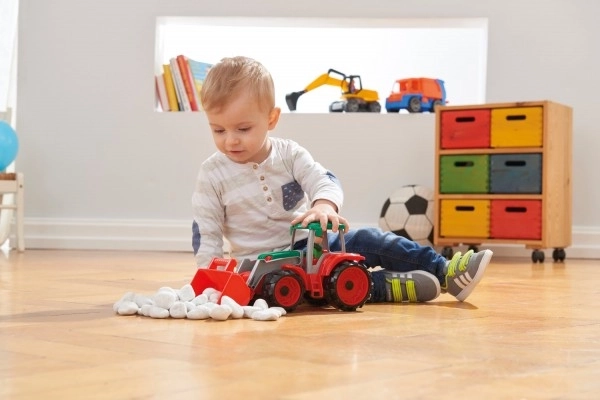 Robustný detský traktor s prednou lyžicou pre malých staviteľov. Vyrobený z kvalitného plastu, je plne mechanicky funkčný, má odolnú konštrukciu a otváraciu kabínu s aktívnym panáčikom pre ešte zábavnejšie hranie doma aj vonku.
