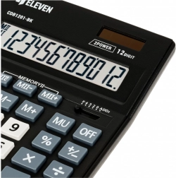 Táto čierna kalkulačka ELEVEN kombinuje prehľadný 12-miestny displej s istotou duálneho napájania, takže spoľahlivo funguje pri dennom svetle aj bez neho. Veľké, čitateľné číslice a pohodlné rozloženie kláves urýchlia každodenné výpočty v kancelárii, v škole aj doma.