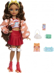 Bábika Barbie Dream Besties Teresa miluje korčuľovanie a prináša svieži, farebný štýl inšpirovaný obláčikmi. Vďaka polohovateľným kĺbom jednoducho zaujme dynamické pózy a podporí deti v rozprávaní vlastných príbehov. Outfit tvorí crop top s dúhou, hebký kardigán s potlačou obláčikov, červená plisovaná sukňa a červené štvorkolieskové korčule s chráničmi kolien.
