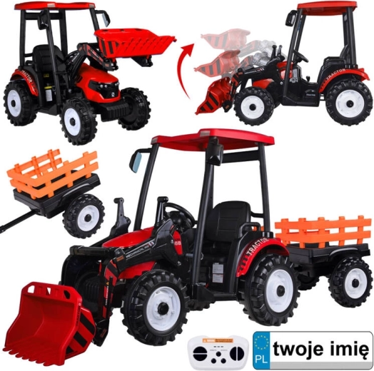 Veľký detský elektrický traktor s prívesom a lyžicou je ideálny pre všetkých malých farmárov. Tento traktor poháňaný dvoma silnými 24 V motormi s výkonom 200 W zvládne jazdu na asfalte, dlažbe aj tráve.