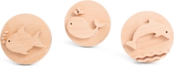 Tieto drevené pečiatky vám umožnia vtlačiť delfína, rybu a veľrybu do piesku. Ideálna zábava pre deti na pieskovisku alebo na pláži. Hra podporuje motoriku, kreativitu a hru vonku.