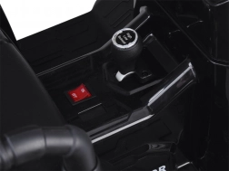 Ovládanie je jednoduché: spínač zapaľovania rozsvieti predné svetlá, pedál pridáva plyn a po uvoľnení pedálu sa aktivuje brzda. Riadacia páka ponúka tri režimy (spiatočka / pomaly / rýchlo) s možnosťou blokovania vyššej rýchlosti pre bezpečnejšie začiatky. Multimediálny panel prehráva zvuky motora, príbehy a pesničky a umožňuje pripojiť vlastnú hudbu cez Bluetooth, USB alebo MP3. Volant napájaný batériami 2×AA má tlačidlá klaksónu.