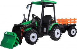 Robustný detský elektrický traktor s prívesom a pohyblivou prednou lyžicou prináša realistickú zábavu na záhrade aj na dvore. Vďaka pohonu 24 V a 2 výkonným motorom si poradí na asfalte, dlažbe aj tráve. Ponúka svetelné a zvukové efekty, bezpečnostný pás, rodičovský diaľkový ovládač 2,4 GHz a multimediálny panel s Bluetooth, USB a MP3.