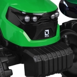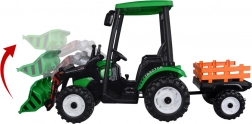 Elektrický traktor pre malých farmárov je vyrobený z odolného plastu, má veľké kolesá na jazdu po rôznych povrchoch a kabínu s prístreškom pre pohodlné nastupovanie. Dieťa môže jazdiť samostatne alebo pod dohľadom rodiča pomocou diaľkového ovládača. Pohyblivá predná lyžica a odnímateľný príves rozširujú možnosti hier – prevoz trávy, hračiek či drobných nákladov.