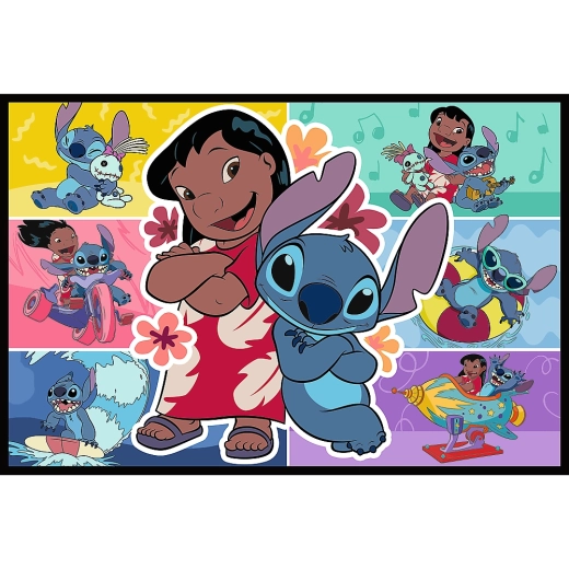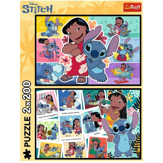 Prinášame vám dvojitú radosť s touto sadou puzzlí s dvomi skladačkami po 200 dielcoch. Témou sú farebné koláže z obľúbenej rozprávky Lilo a Stitch, ktoré poskytnú zábavu pre celú rodinu.