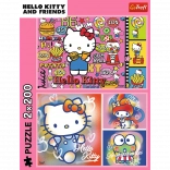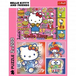 Puzzle 2x200 Hello Kitty a priatelia ponúkajú dva obrazy v jednom sete, každý s 200 dielcami, ktoré poskytnú hodiny zábavy pre deti aj dospelých. Táto sada puzzle predstavuje farebné koláže inšpirované obľúbenou rozprávkou Hello Kitty, ktoré po zložení dosahujú rozmery 410x275 mm.