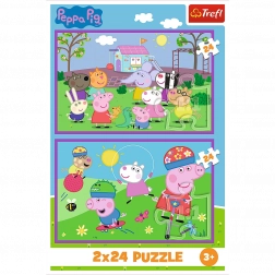 Súprava puzzle 2x24 je skvelou zábavou pre deti, obsahuje dve skladačky s 24 dielikmi s motívom obľúbenej postavičky Peppa Pig, ideálny pre spoločné hranie.