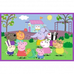 Tieto puzzle s motívom Peppa na ihrisku prinášajú príbehy a postavičky zo známej série Peppa Pig. Každú skladačku tvorí obrázok s rozmermi 275x180 mm. Vďaka kvalitnému spracovaniu a materiálom s certifikátom FSC je skladanie zábavné a bezpečné pre životné prostredie: