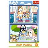 Puzzle 2x24 Veselá Bluey ponúka dve skladačky po 24 dielikov v jednom balení! Vďaka tomu je skladanie ešte zaujímavejšie a umožňuje účasť viacerých detí.
