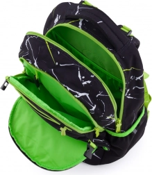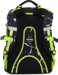 Vo vnútri nájdete 2 priestranné komory na učebnice a zošity, bočné elastické vrecká na fľašu s pitím a predné vrecko na drobnosti alebo desiatu. Reflexné prvky zvyšujú viditeľnosť a bezpečnosť pri ceste do školy aj zo školy. S objemom 28 l, hmotnosťou 960 g a nosnosťou 8 kg je to spoľahlivý parťák na každý deň.