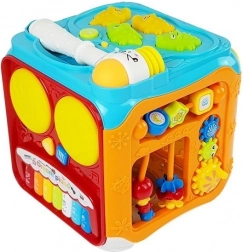 Interaktívna edukatívna kocka umožňuje rôznorodú a pútavú zábavu pre vaše dieťa. Každá strana kocky má inú funkciu, čo umožňuje deťom presúvať prvky, priraďovať tvary a hrať sa s hudbou a svetlami. Zvukové a svetelné efekty stimulujú senzorické vnímanie a uľahčujú učenie.