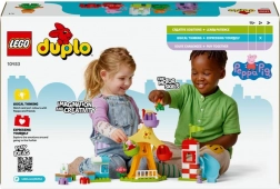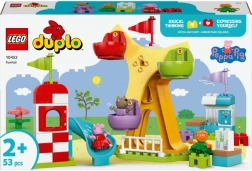 Stavebnica LEGO DUPLO Prasiatko Peppa – zábavný park prenesie deti do sveta obľúbeného seriálu. Sada je ideálna na prvé staviteľské krôčiky: deti môžu posadiť postavičky do gondol a roztočiť ruské kolo, šmýkať sa na šmýkačke alebo sa hrať pri stánku s džúsmi. Hravou formou si precvičia koordináciu oko–ruka a objavia emócie spojené s novými zážitkami.