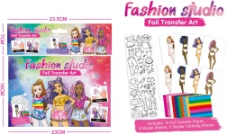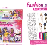 Objavte svoju kreativitu pomocou dizajnérskeho portfólia, ktoré obsahuje 8 modeliek, 2 listy šablón oblečenia a 12 farebných lepiacich fólií.
