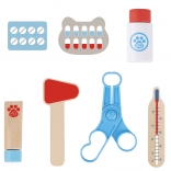 Sada obsahuje 16 rôznych dielov vrátane stetoskopu, injekčnej striekačky a ďalších lekárskych nástrojov, ktoré deťom umožnia napodobňovať skutočnú prácu veterinára.