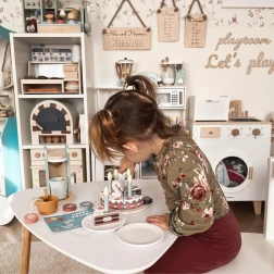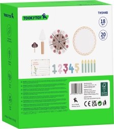 Roztomilá drevená narodeninová torta od TOOKY TOY prináša deťom hodiny kreatívnej hry. Sada obsahuje 20 dielikov, vrátane sviečok, čísel 1–5, kartičky „Happy Birthday“ a servírovacej lopatky. Jednotlivé porcie sa spájajú na suchý zips, čo zaisťuje jednoduché „krájanie“ a opätovné skladanie. Skvelé na rozvoj jemnej motoriky, spolupráce a učenie čísel pri hre na oslavu.