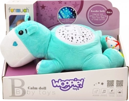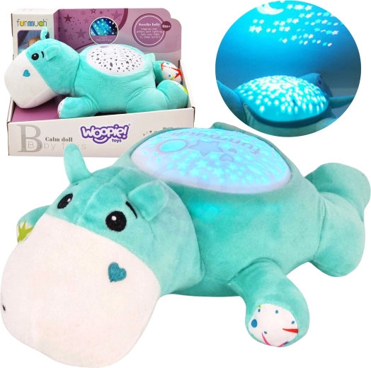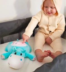 Plyšový hrošík WOOPIE BABY vytvára pred spaním pohodovú atmosféru vďaka jemnému svetlu projektora a relaxačným uspávankám s prírodnými zvukmi. Svetielka plynulo menia farby a premietajú hviezdy, mesiac a planéty, čo deťom dodáva pocit bezpečia.