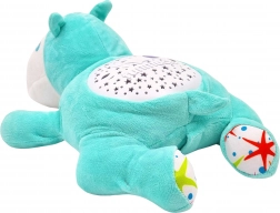 Hudobný modul prehráva niekoľko uspávaniek až 20 minút v kuse, takže dieťa nerušene zaspí bez nutnosti opätovného spúšťania. Ovládanie je jednoduché – tlačidlo na brušku pre svetlo a hudbu a 2 úrovne hlasitosti pre ideálnu hlasitosť do detskej izby. Mäkučké telo je vyplnené jemnou vatou a mechanizmus možno ľahko vybrať pre bezpečné pranie.