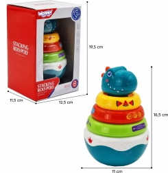 Doprajte svojmu dieťaťu skvelý zážitok s hračkou Woopie Dino hromada, ktorá kombinuje senzorický rozvoj s manuálnymi zručnosťami. Táto farebná hračka je navrhnutá tak, aby podporila prirodzený rozvoj rovnováhy a citlivosti na dotyk vďaka možnosti stavať prvky v rôznych tvaroch. Vaše dieťa sa bude baviť skladaním až 6 rôznych prvkov, čo pomáha rozvíjať jeho jemnú motoriku a zmysel pre rovnováhu.