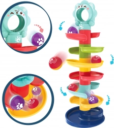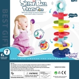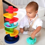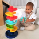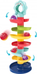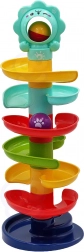 Tento jedinečný kulodrom od značky Woopie je ideálnym zábavným prvkom pre deti od 6 mesiacov veku. Vďaka špirálovej veži môžu deti sledovať guľôčky ako sa kotúľajú zhora nadol, čo pomáha rozvíjať ich koordinačné schopnosti a vizuálne sledovanie. Veľkosť a váha guľôčok sú ideálne pre malé detské ručičky, čo umožňuje jednoduchú manipuláciu.