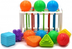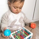 Obsahuje celkom 12 kociek, vrátane 6 mäkkých loptičiek a 6 tvrdých senzorických kociek.