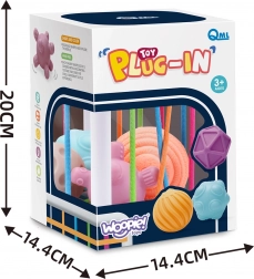 - Vkladanie a vyťahovanie tvarov, učenie farieb a tvarov, rozvoj jemnej motoriky a zmyslov