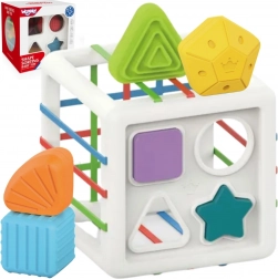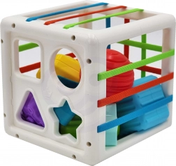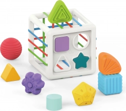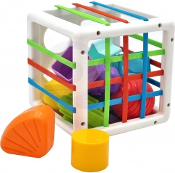 Táto farebná senzorická kocka kombinuje dve obľúbené aktivity: vkladanie dielikov cez elastické pásiky a triedenie do tvarových otvorov. Deti sa učia rozpoznávať farby a geometrické tvary, rozvíjajú zvedavosť aj schopnosť sústredenia. Pevné dieliky sa ľahko uchopujú a kocka má praktickú konštrukciu na pohodlné prenášanie aj upratovanie.