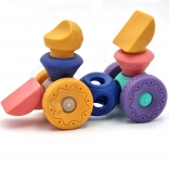 Diely možno jednoducho prepájať a stavať rôzne konštrukcie – od jednoduchých veží až po zábavné vozidlá, ako je „závodné autíčko“. Sada je ideálna na hranie, učenie aj hryzenie v období prerezávania zúbkov. Praktické balenie v kartónovej krabici s okienkom z nej robí skvelý darček pre bábätká od 6 mesiacov.