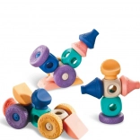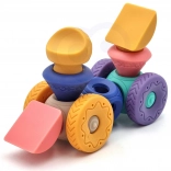 Diely možno medzi sebou prepájať a skladať do rôznych konštrukcií – od veží po zábavné vozidlá. Hra podporuje fantáziu a jemnú motoriku.