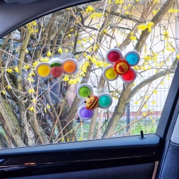Jednoducho pripevníte na okno, obklady, vaňu alebo stôl. Ideálna zábava do auta aj do kúpeľne – spinner drží a dieťa sa môže bezpečne hrať.