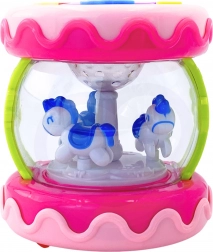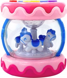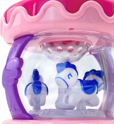 Vnútorná časť hračky obsahuje kolotoč s koníkmi, ktoré sa otáčajú pri aktivácii zvukov, čo poskytuje zábavu a vizuálnu stimuláciu.