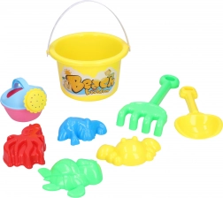 - 8 dielov v balení: vedierko s obrázkom, lopatka, kanvička, hrabličky a 4 formičky