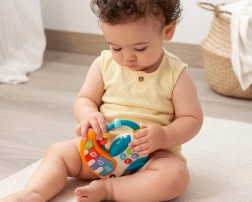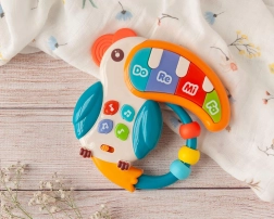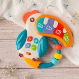 Štyri farebné klávesy prehrávajú tóny a krátke melódie, ktoré podporujú rytmus, sluchové vnímanie a prvé hudobné krôčiky.