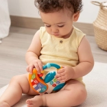 Pohyblivé koráliky a madlo výborne padnú do detskej ruky. Posúvanie a trasenie rozvíjajú úchop, koordináciu a sústredenie.
