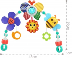 WOOPIE oblúk s hračkami je navrhnutý tak, aby poskytol deťom nielen zábavu, ale aj rozvoj. Na oblúku nájdete rôzne hračky, ako je veterné koliesko s lienkou, ktoré sa otáča a vibruje pri pohybe, pískať slniečko pri stlačení, hrkálku motýlik s priehľadnou guľou, v ktorej skáču farebné guličky, i šuchtavé materiály obohacujúce detskú zmyslovú skúsenosť.