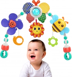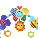 Obsahuje hračky z rôznych textúr a funkcií, ktoré podporujú zmyslový rozvoj.