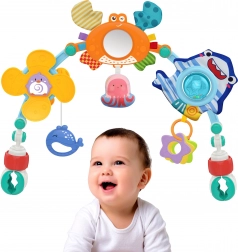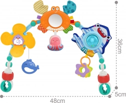 Hrací oblúk s hračkami od značky Woopie je ideálne riešenie pre zábavu a rozvoj vášho bábätka. Tento pestrofarebný oblúk je vybavený rôznymi hračkami inšpirovanými morským svetom, ako sú veterník s tučniakom, krab zrkadlo, chobotnička, žralok hrkálka a delfín záves. Hračky vyvolávajú interakciu dieťaťa a pomáhajú rozvíjať jeho zmyslové a motorické schopnosti.