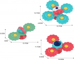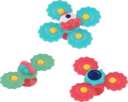 Sada 3 točiacich sa hračiek typu spinner od značky Woopie je interaktívna a farebná hračka pre vaše dieťa. Každá z hračiek je iná a má 2, 3 alebo 4 ramená. Možno ich pripevniť k hladkým povrchom, čo rozširuje možnosti hry.