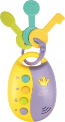 Interaktívne kľúče od značky Woopie sú multifunkčná a moderná hračka, ktorá určite zaujme každého malého drobca. Štyri farebné klávesy po stlačení aktivujú rôzne zvukové a svetelné efekty. Tieto efekty simulujú zvuky otvárania a zatvárania auta, klaksón, štartovanie motora alebo zvonček pri dverách, čo zaistí realistickú a fascinujúcu zábavu. Rôzne tvary kľúčov môžu tiež slúžiť ako hryzadlo, ktoré zmierni bolesti pri prerezávaní zúbkov a zároveň podporí zmyslový rozvoj. Dieťa sa môže tiež tešiť z 10 rôznych pesničiek, ktoré pomôžu rozvíjať jeho rytmické a hudobné schopnosti.